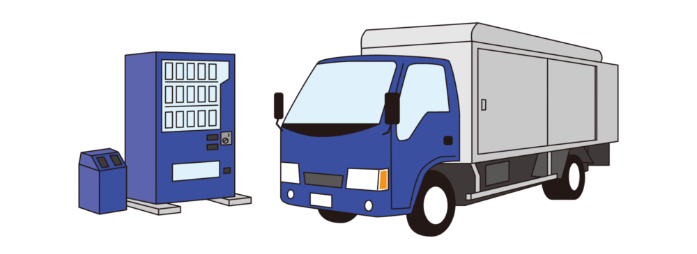 主にサントリーホールディングス株式会社様から業務を請け負い、トラックを使用して自動販売機の設置や回収をする事業です。